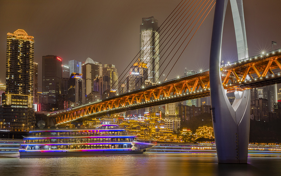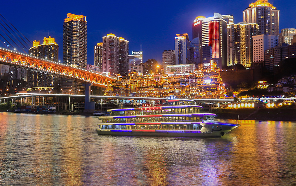 長(cháng)航朝天皓月(yuè)遊輪外(wài)觀大(dà)氣,內(nèi)部裝飾豪華,提供免費(fèi)WiFi、船(chuán)上(s&hàng)提供免費(fèi)表演、中英文(wén)語音(yīn)講解。朝天皓月(yuè)遊輪航行(xíng)路(lù)線以重慶朝天門(mén)碼頭為(wèi)中心,延伸至長(cháng)江和(hé)嘉陵江,能(néng)夠讓觀光(guāng)遊客從(cóng)更£廣視(shì)角看(kàn)更多(duō)景點,真正诠釋了(le)立體(tǐ)、動态、近(jìn)距離(lí)、全方位的(de)船(chuán)遊特§色。